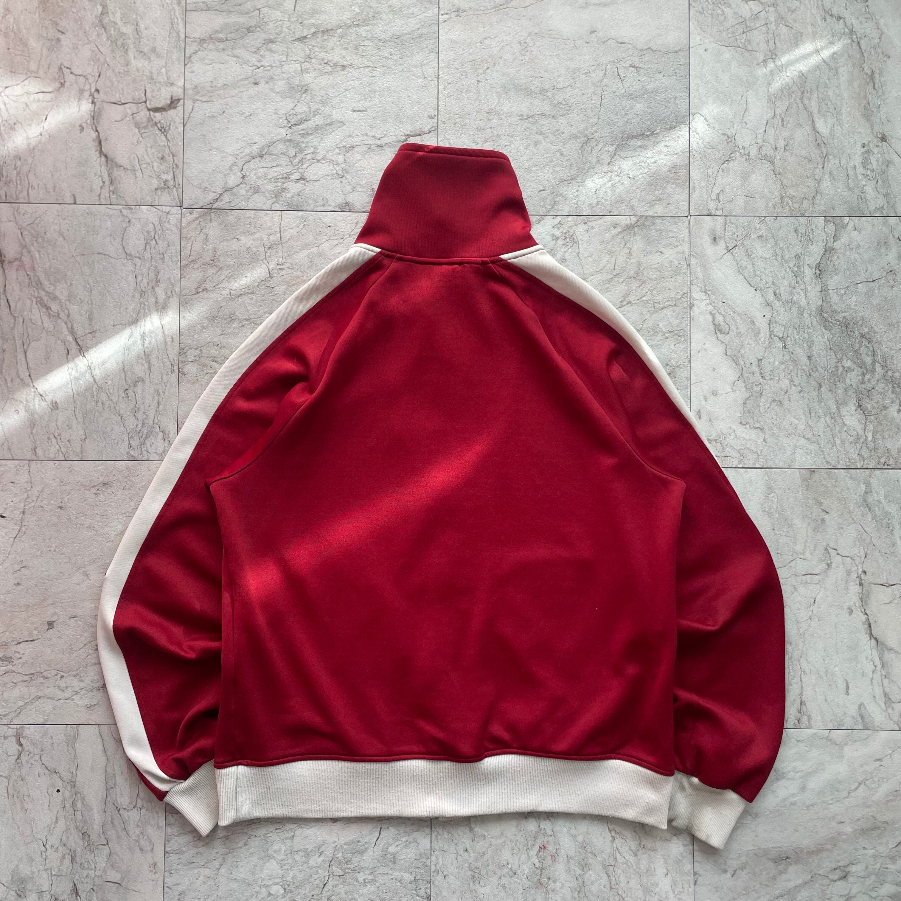 デザイン、サイズ感が非常に良いプーマのトラックジャケット。普通のトラックジャケットと比べ、襟が長いのが特徴的でとてもかっこいいです。パンツは太めのダブルニーで合わせAラインシルエットを意識しました。
