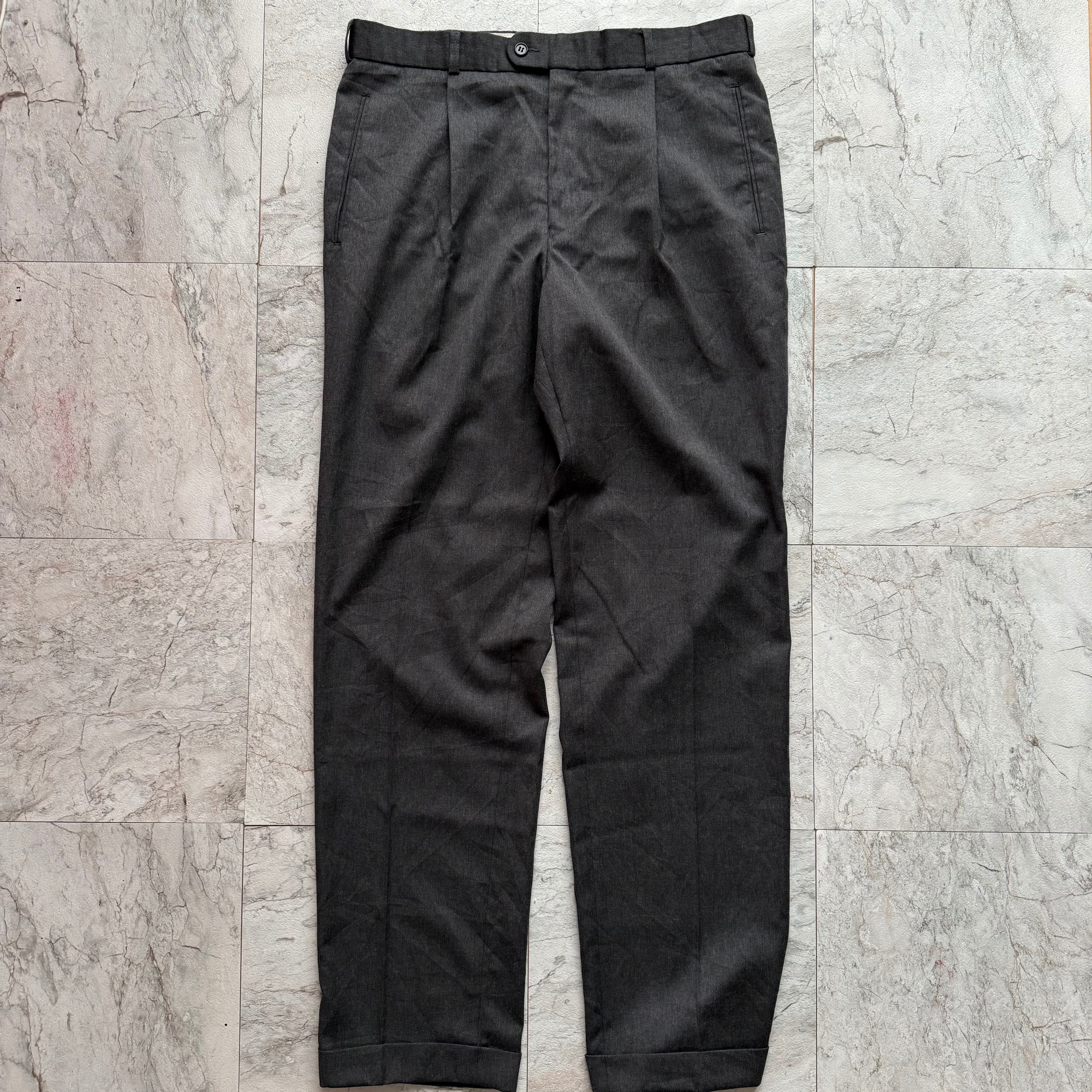短丈のチェックシャツとスラックスを合わせた海外スタイル。