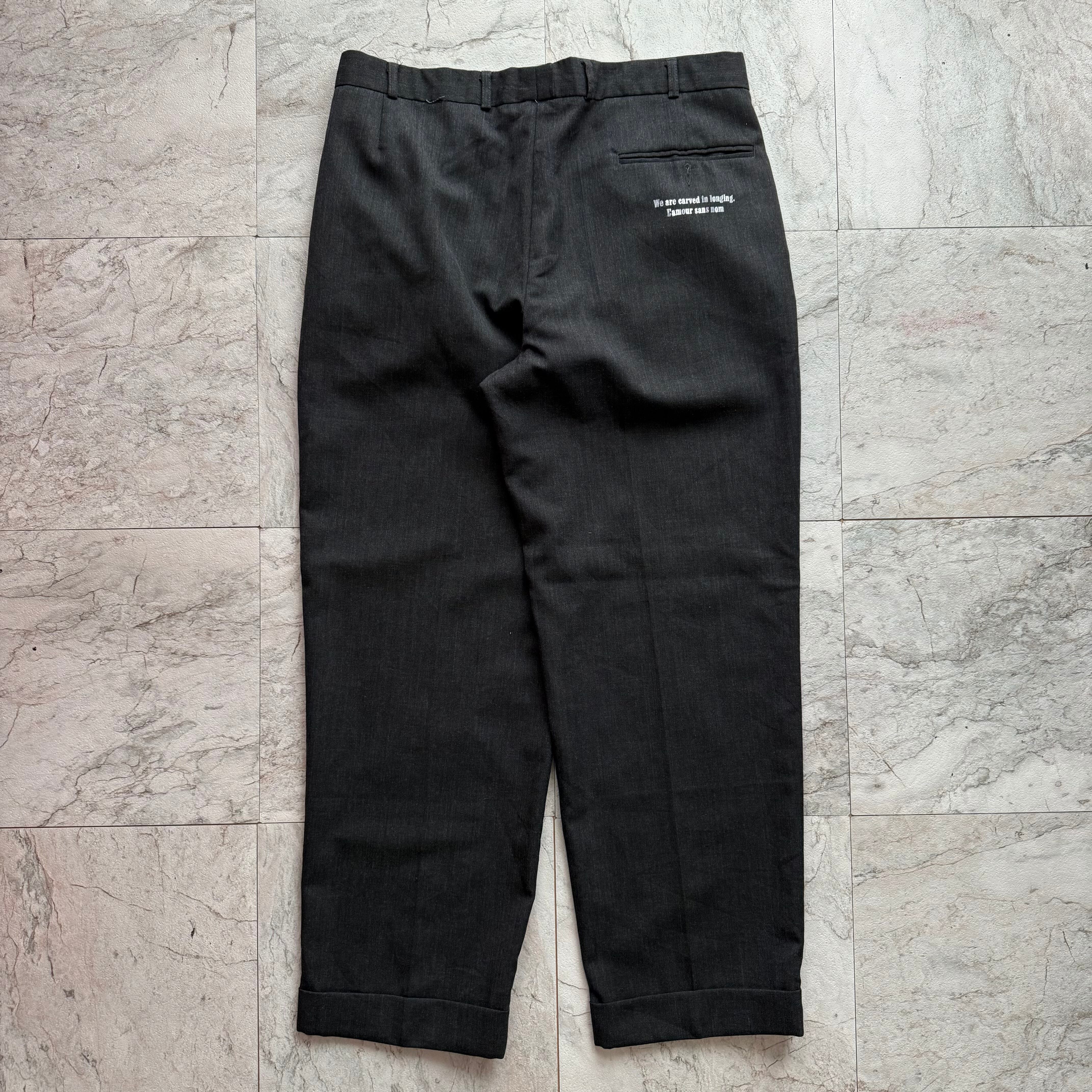 “^ forever / devotion / look / ache” の言葉を、トップスとパンツにランダムに散りばめたグラフィックが印象的。静かな佇まいの中に、感情やメッセージ性が宿るデザインオシャレなデザインです!