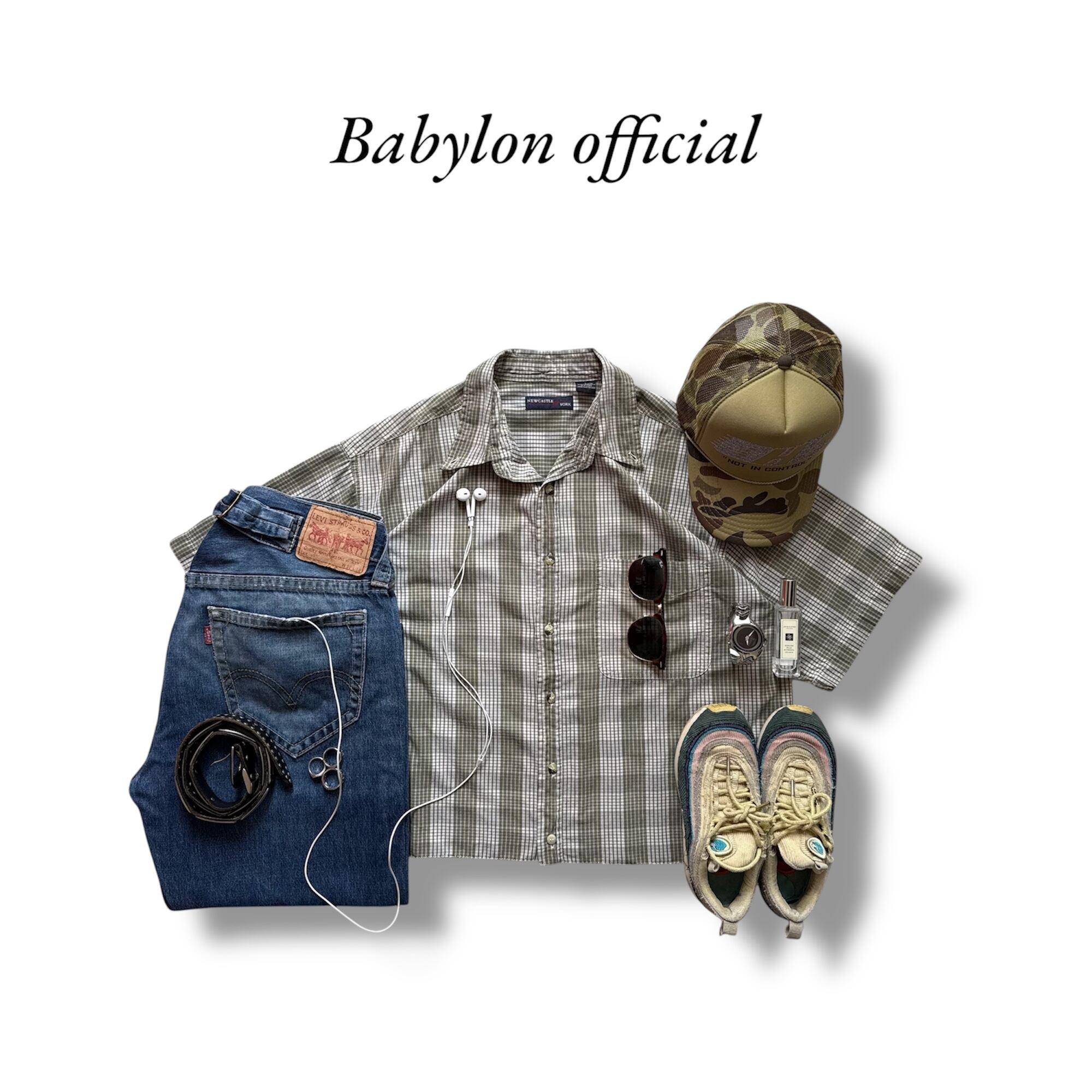 落ち着いたグレートーンの短丈チェックシャツに、リーバイスのワイドデニムを合わせた王道のスタイル。足元にはレトロなマルチカラースニーカーを合わせると外しの効いたストリートな雰囲気になります!