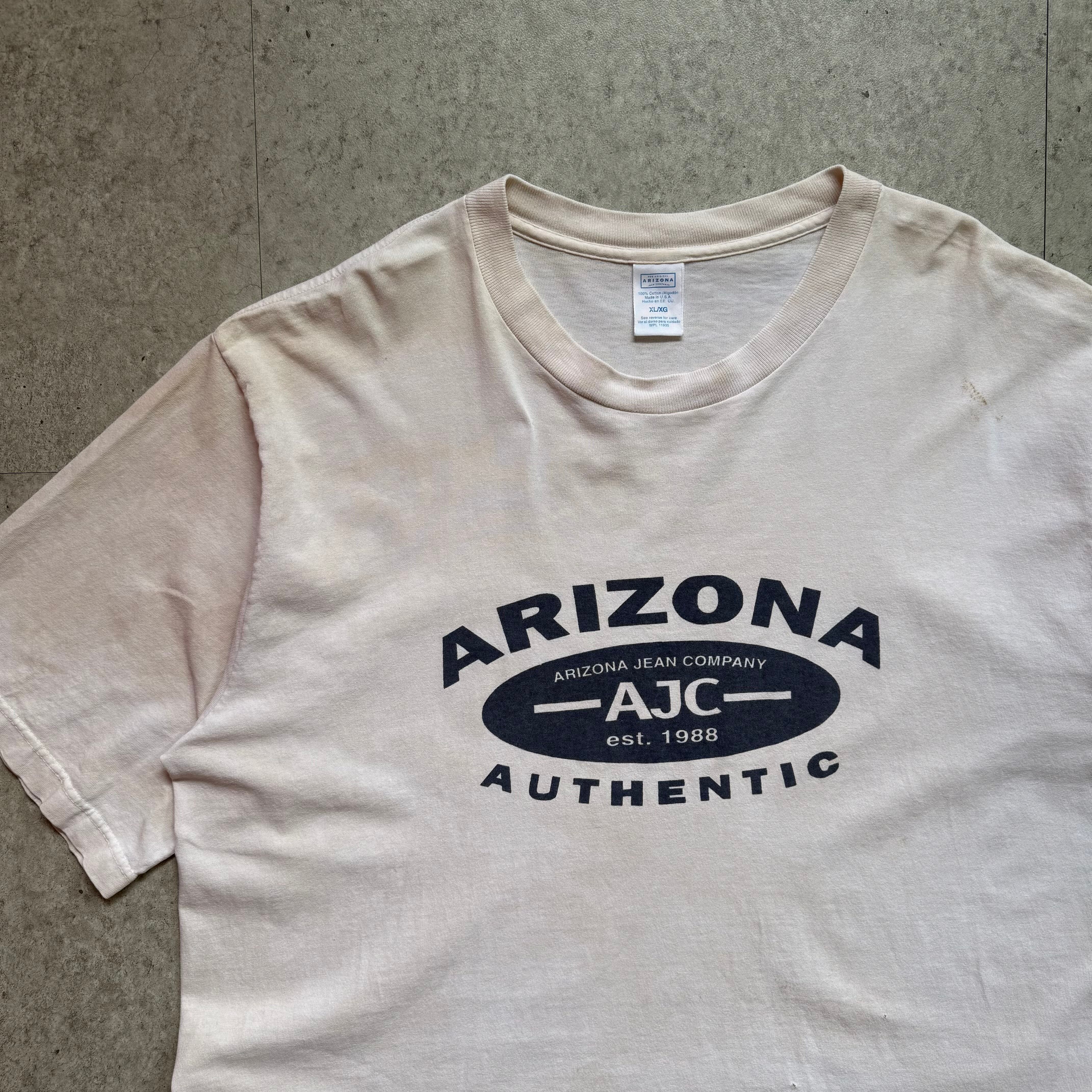 フロントに「ARIZONA AJC AUTHENTIC」のロゴが映えるホワイトTシャツ。汚れ具合が非常にかっこよくアメカジの雰囲気を残しながらも現代的なバランスに仕上げられた一枚で、柔らかい生地感が着心地も軽やかです。