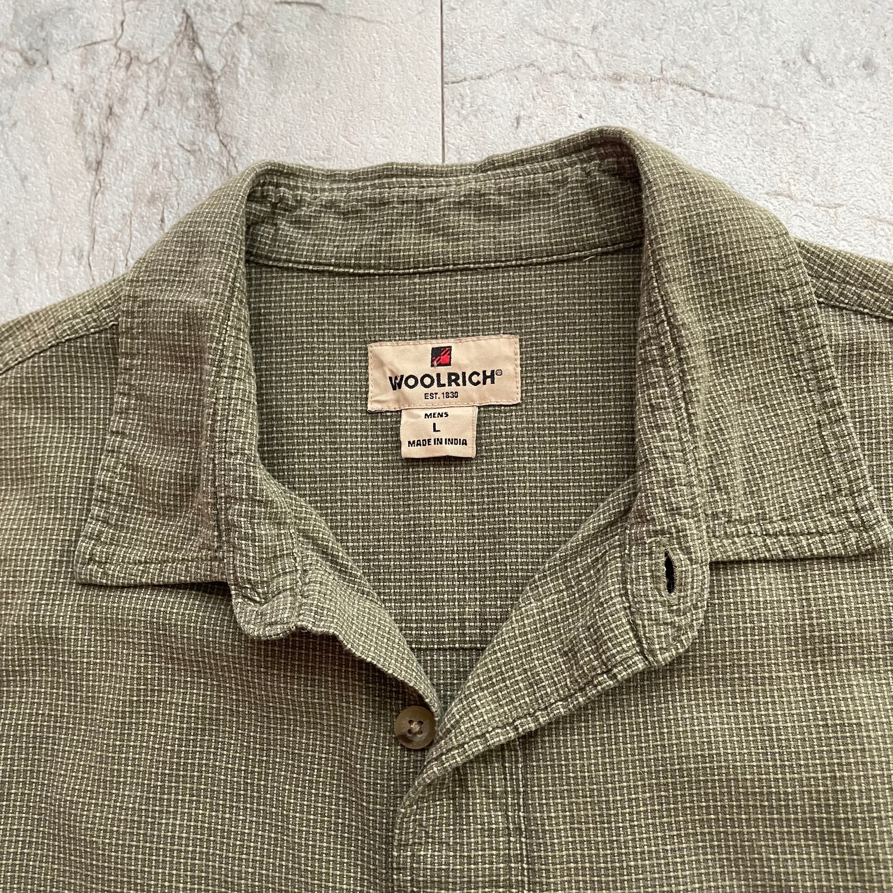 vintageのWOOLRICHのシャツとワイドスラックスを合わせた海外風スタイル。
