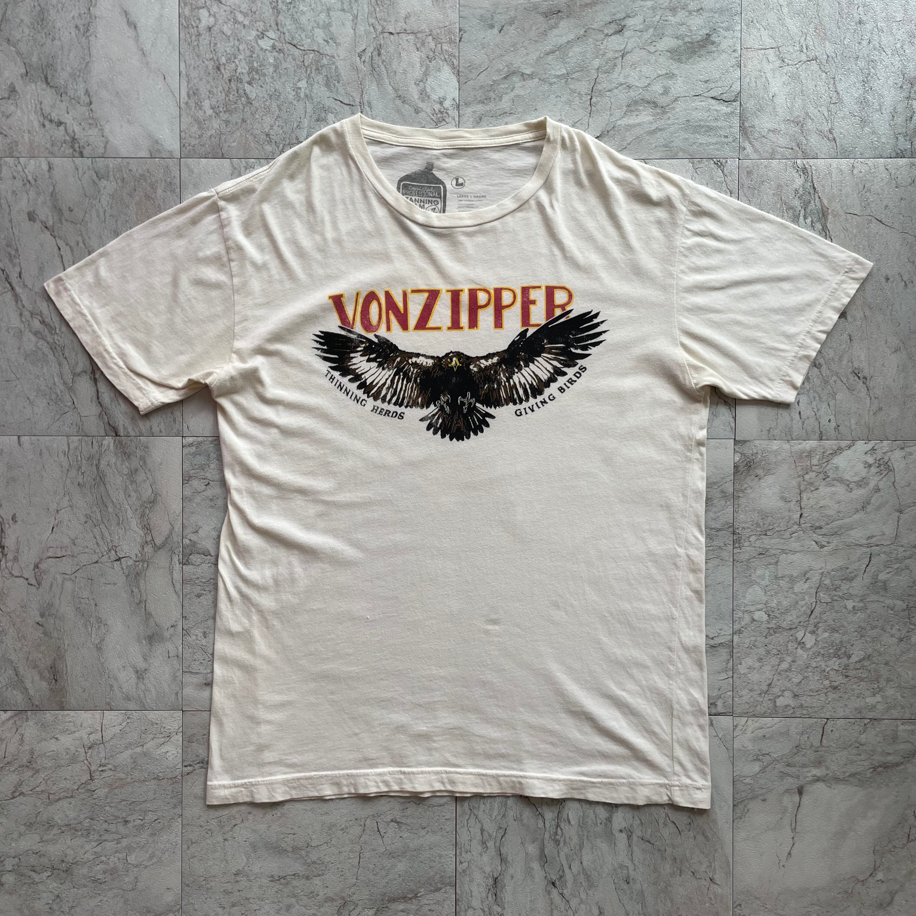 イーグルのプリントが施された白Tに淡い色のデニムを合わせたアメカジスタイル。