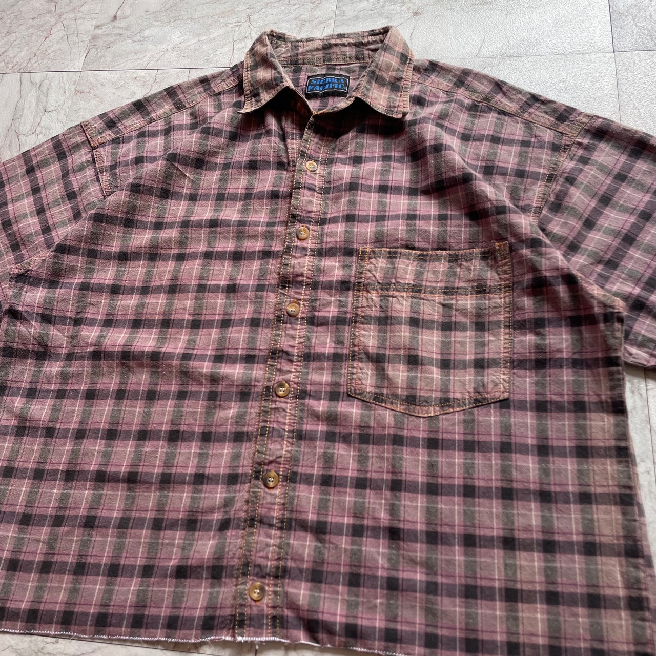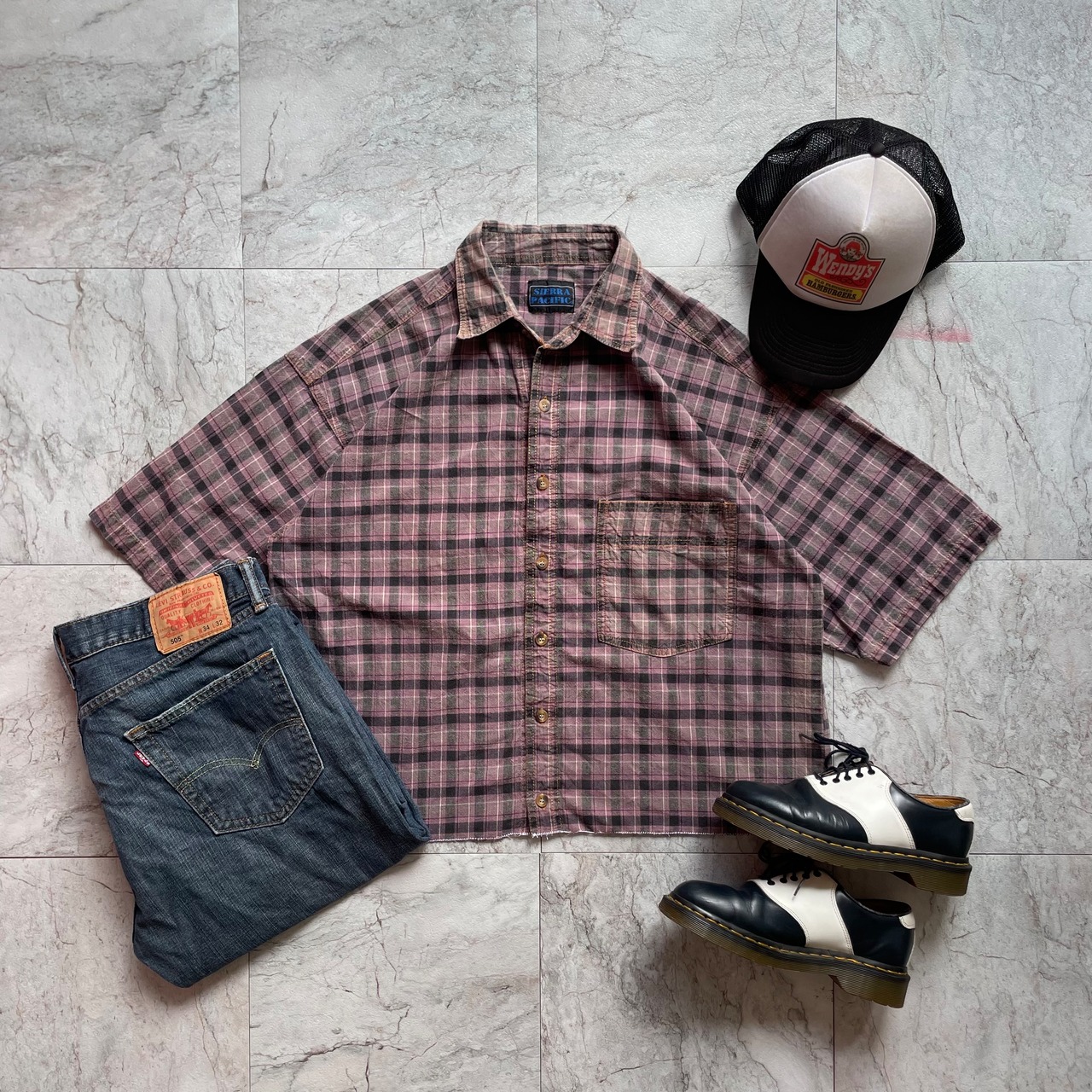 黄色のステッチがとても可愛いシャツにデニムで合わせてThe 海外スタイル て感じです。身幅に対して着丈が短い短丈のボックスシルエットのシャツが可愛いです。
