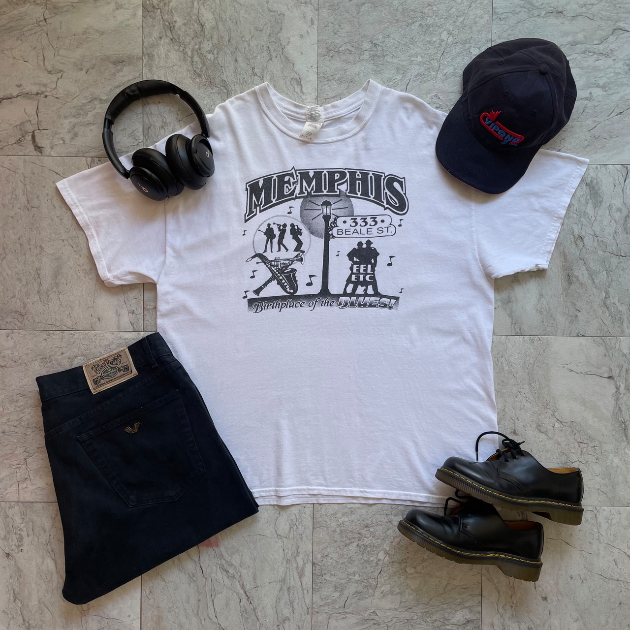 ギルダンのTシャツとWANPUMのパンツで合わせたシティーボーイスタイル。