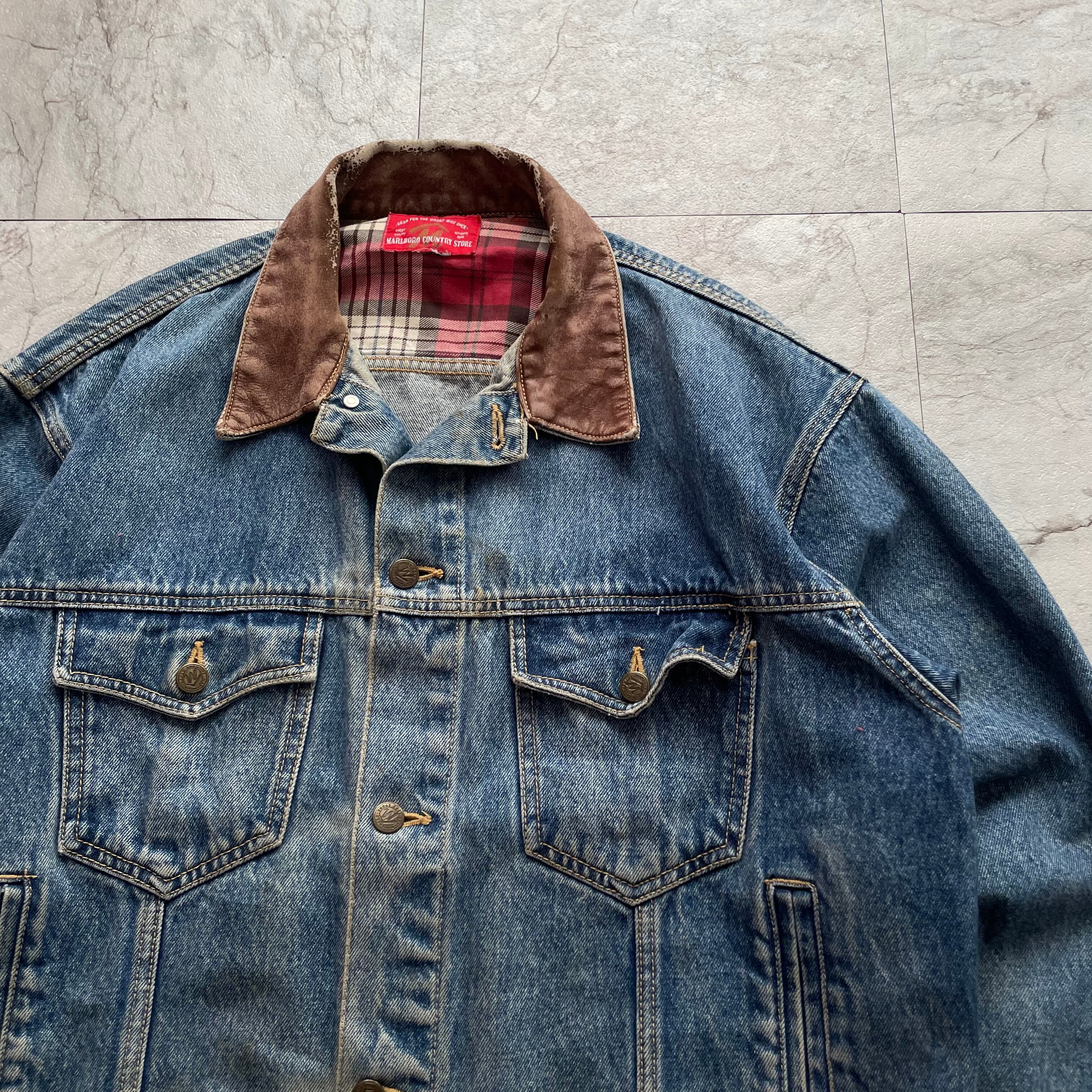 デニムジャケットは丈が短く身幅が広いシルエットでとても形がいいです。襟の部分の擦れてる感じやボディーの色落ち具合が最高の1着。