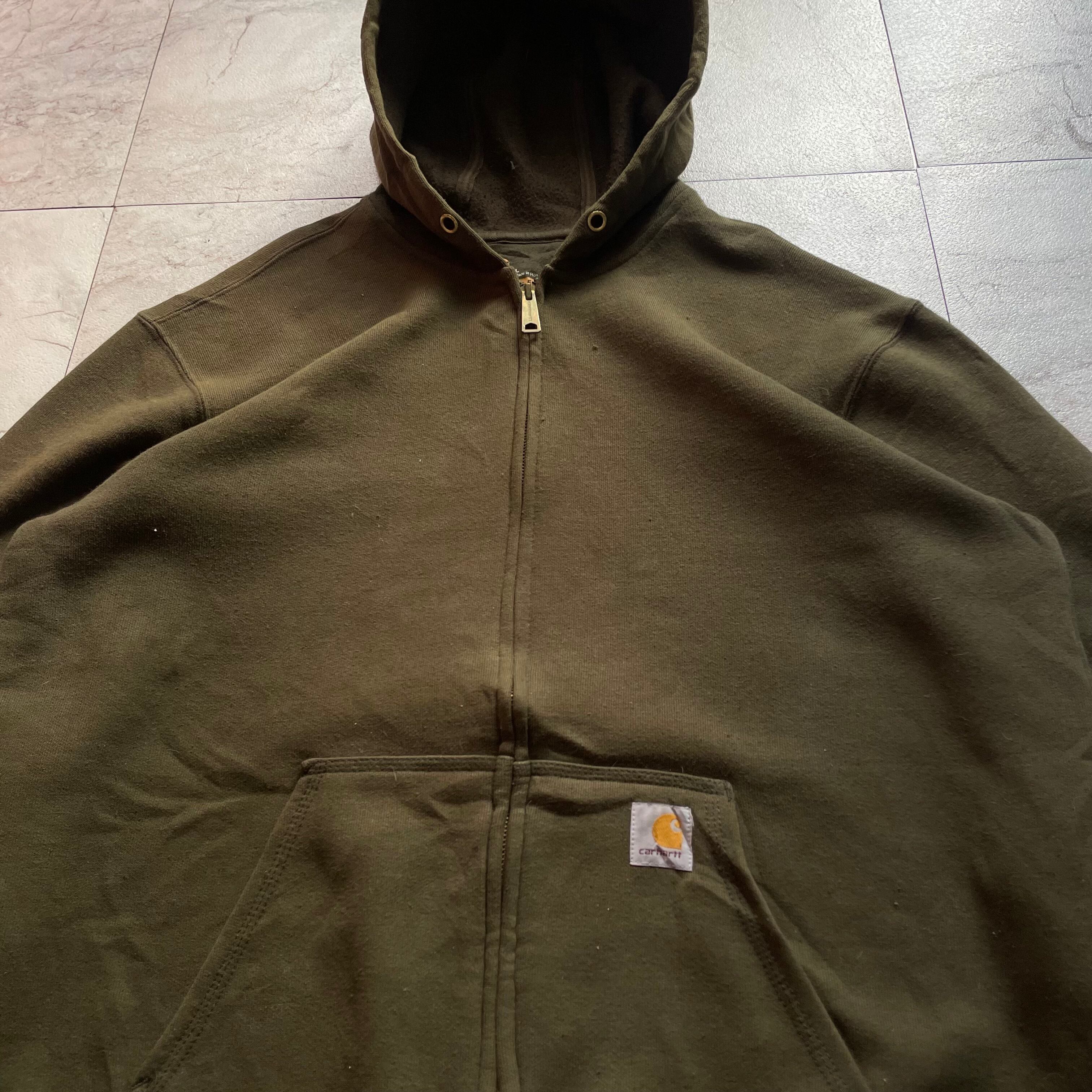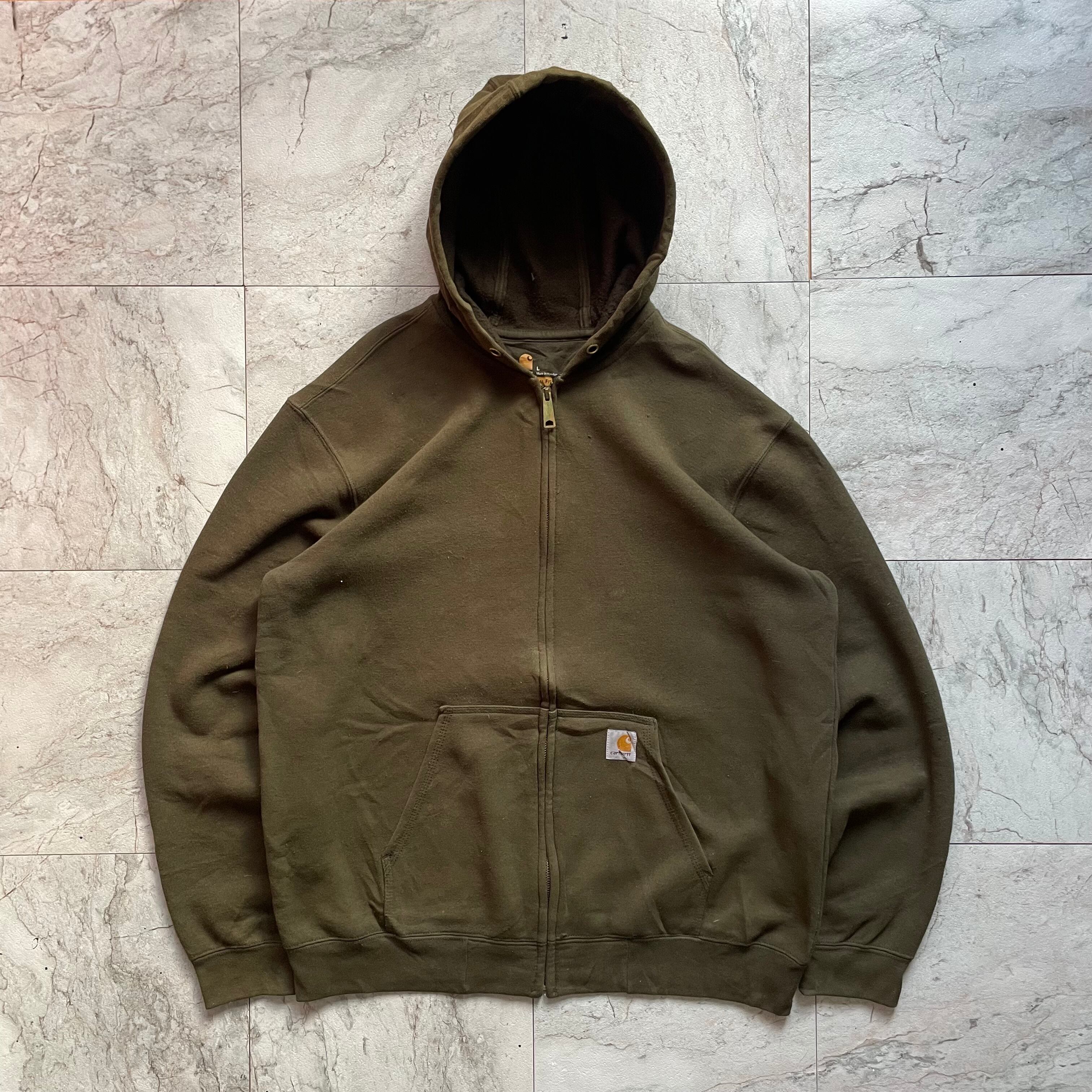 カーハートのジップアップパーカーとリアルツリーのパンツを合わせたストリートスタイル。