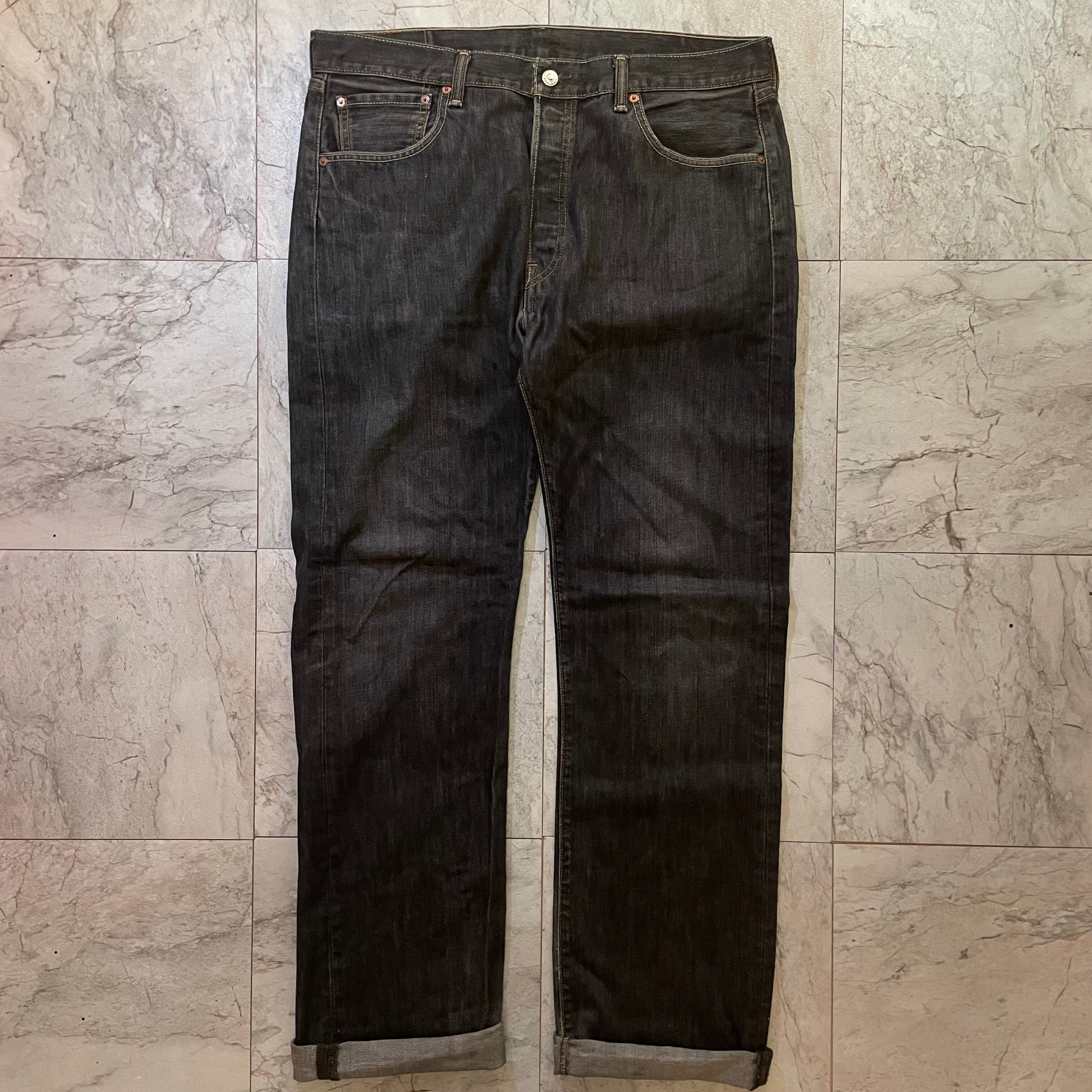 ビンテージのスウェットとリーバイスのブラックデニムでオールブラックのストリートスタイル。