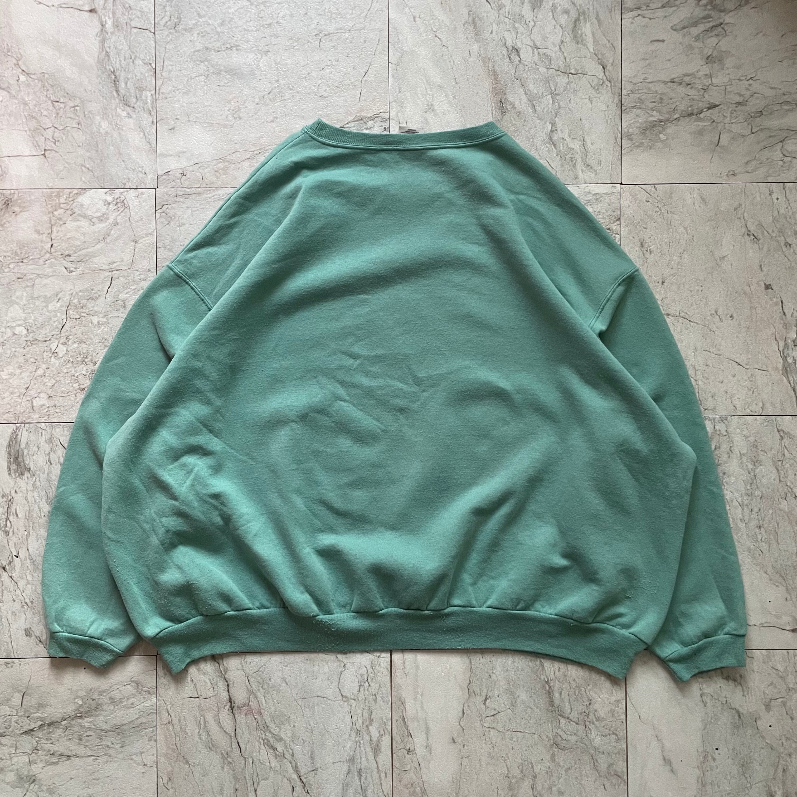 フェードターコイズブルーのカラーがとても可愛いトップス。身幅がとても広く短丈オーバーサイズで着用できるおすすめのアイテムです!スラックスで合わせてバランスの良いスタイルです!