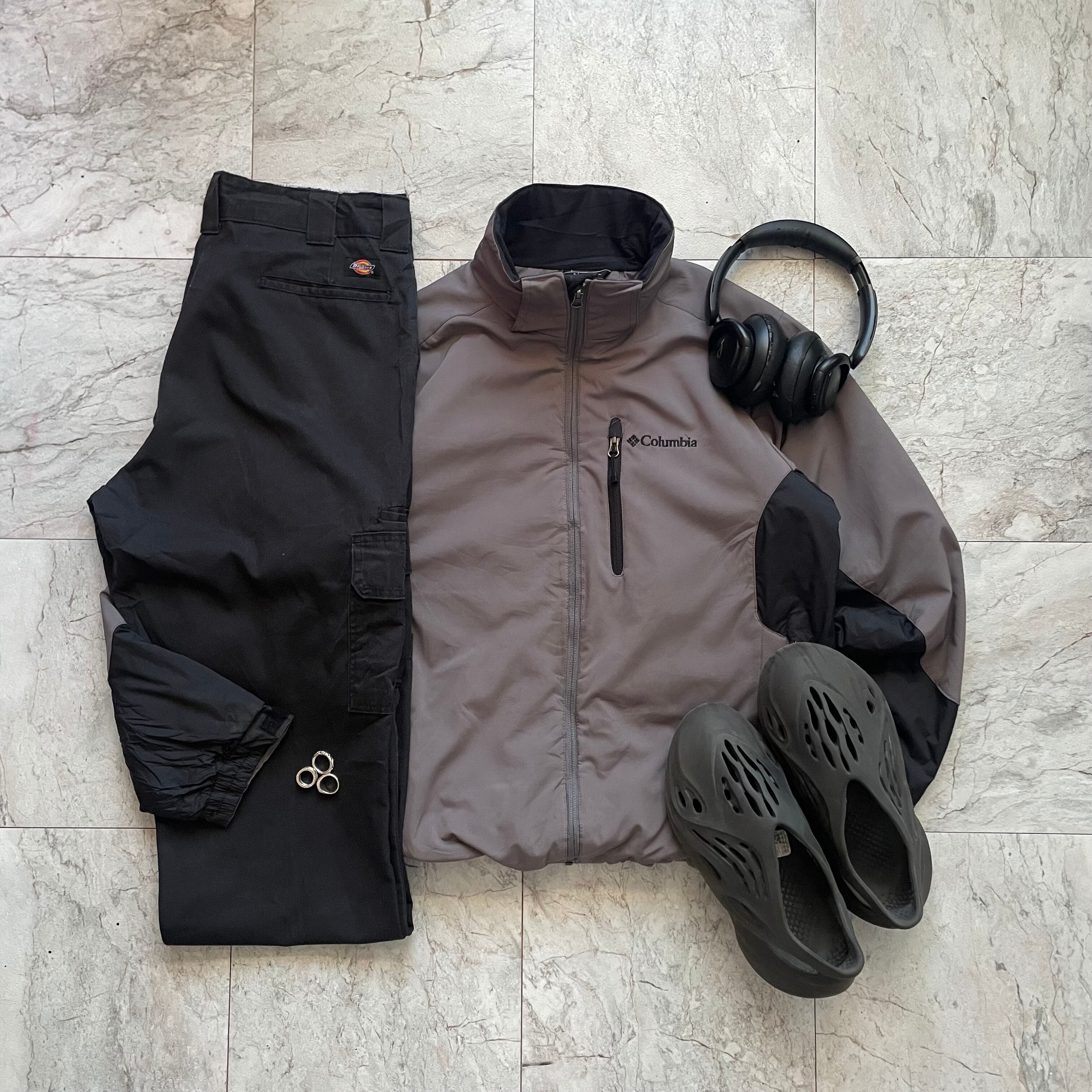 コロンビアのナイロンジャケットとディッキーズのワークパンツで合わせたゴープコアスタイル。