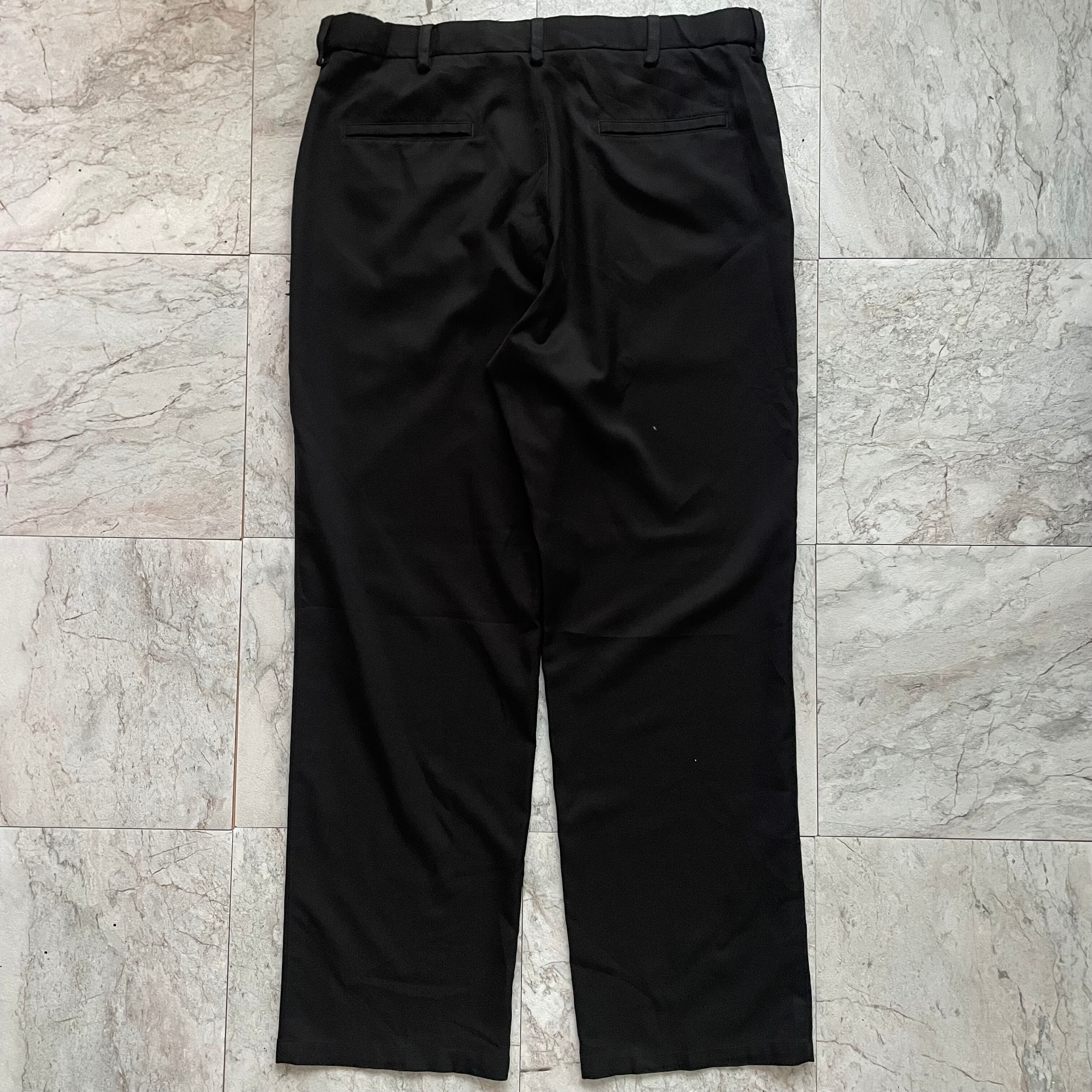 ビンテージのウールジャケットと黒のスラックスでオールブラックにまとめたカジュアルモードスタイル。