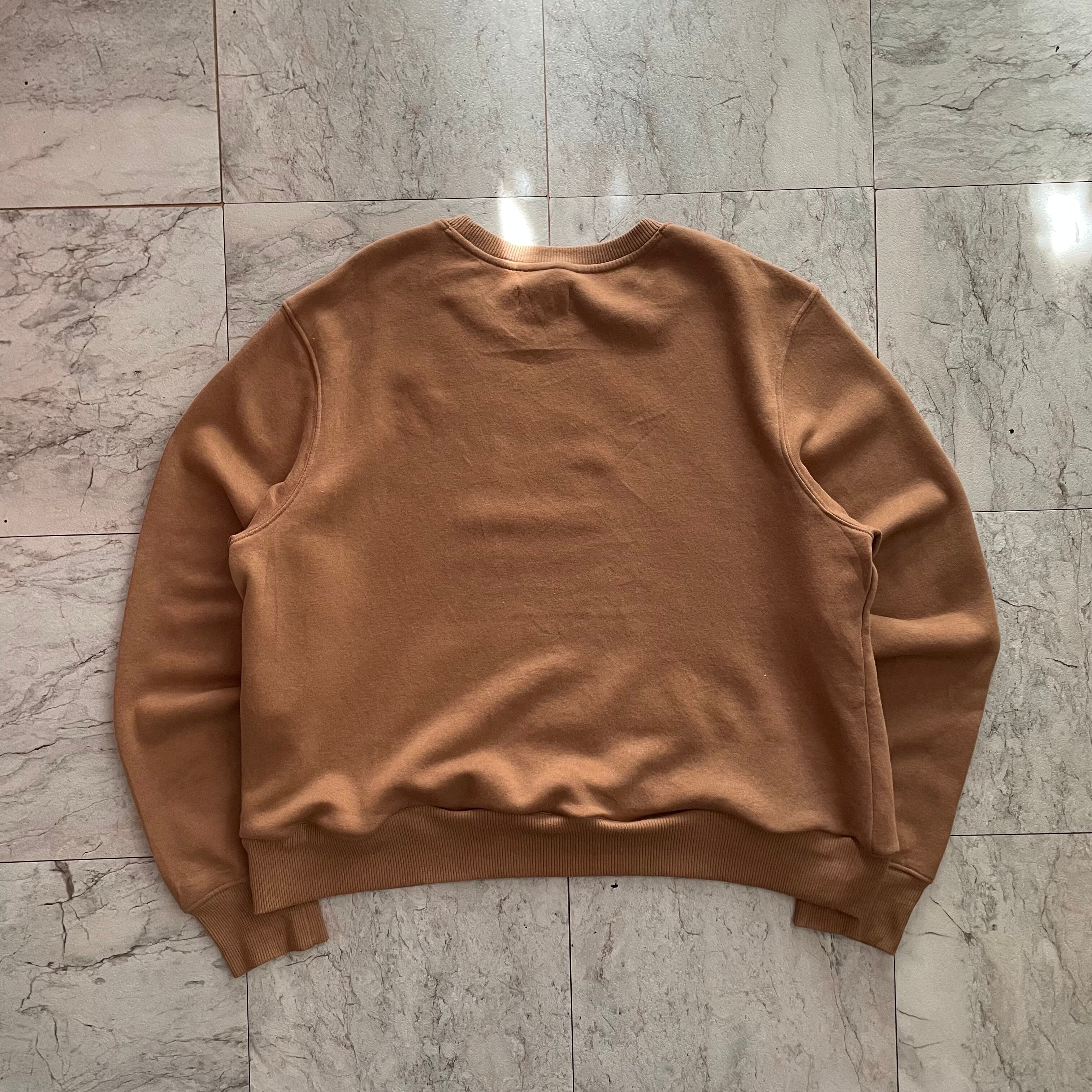 ブラウンのスウェットに擦れた感じのプリントがとてもかっこいいスウェット。ストリートに落とし込めるかっこいいデザインでそれに合わせてルーズなブラックデニムを合わせました!