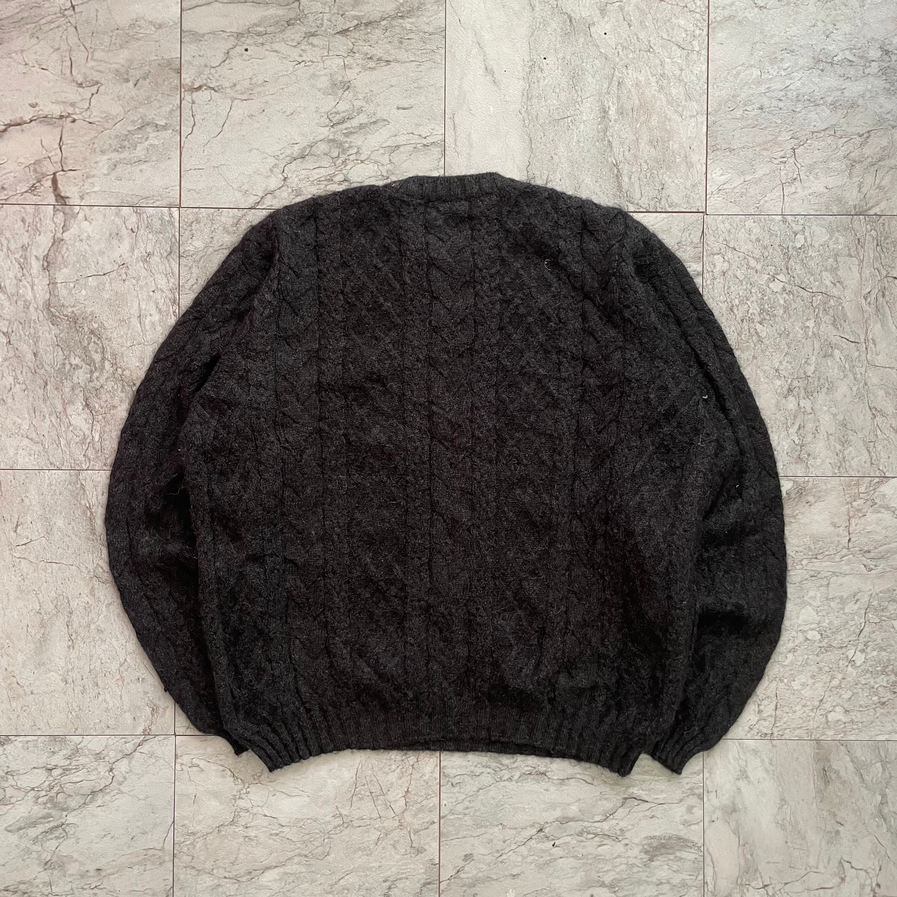 ビンテージの黒のケーブルニットとユーロミリタリーの軍パンで合わせた海外スタイル。
