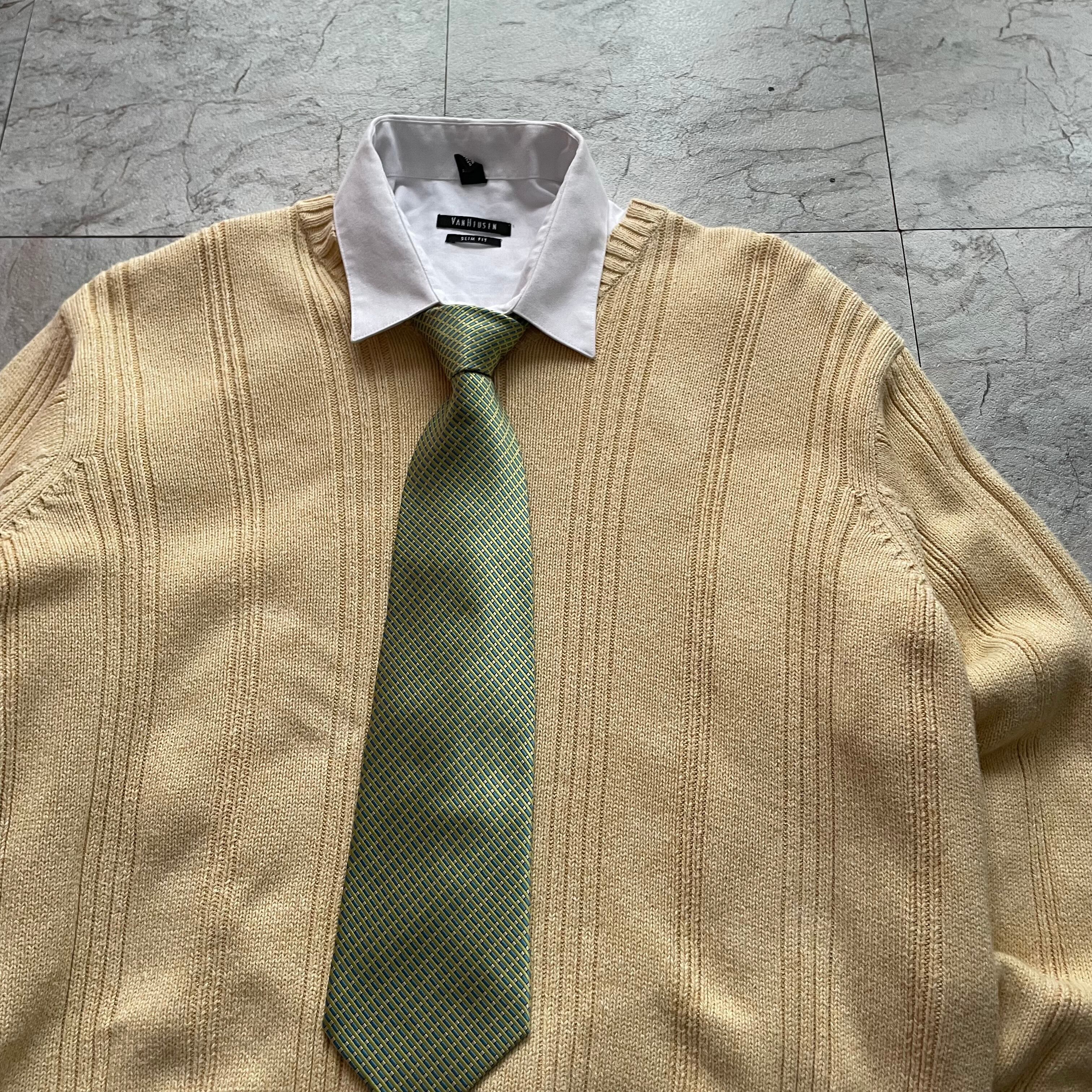 ニット、シャツ、ネクタイ、パンツの四点セットになります。