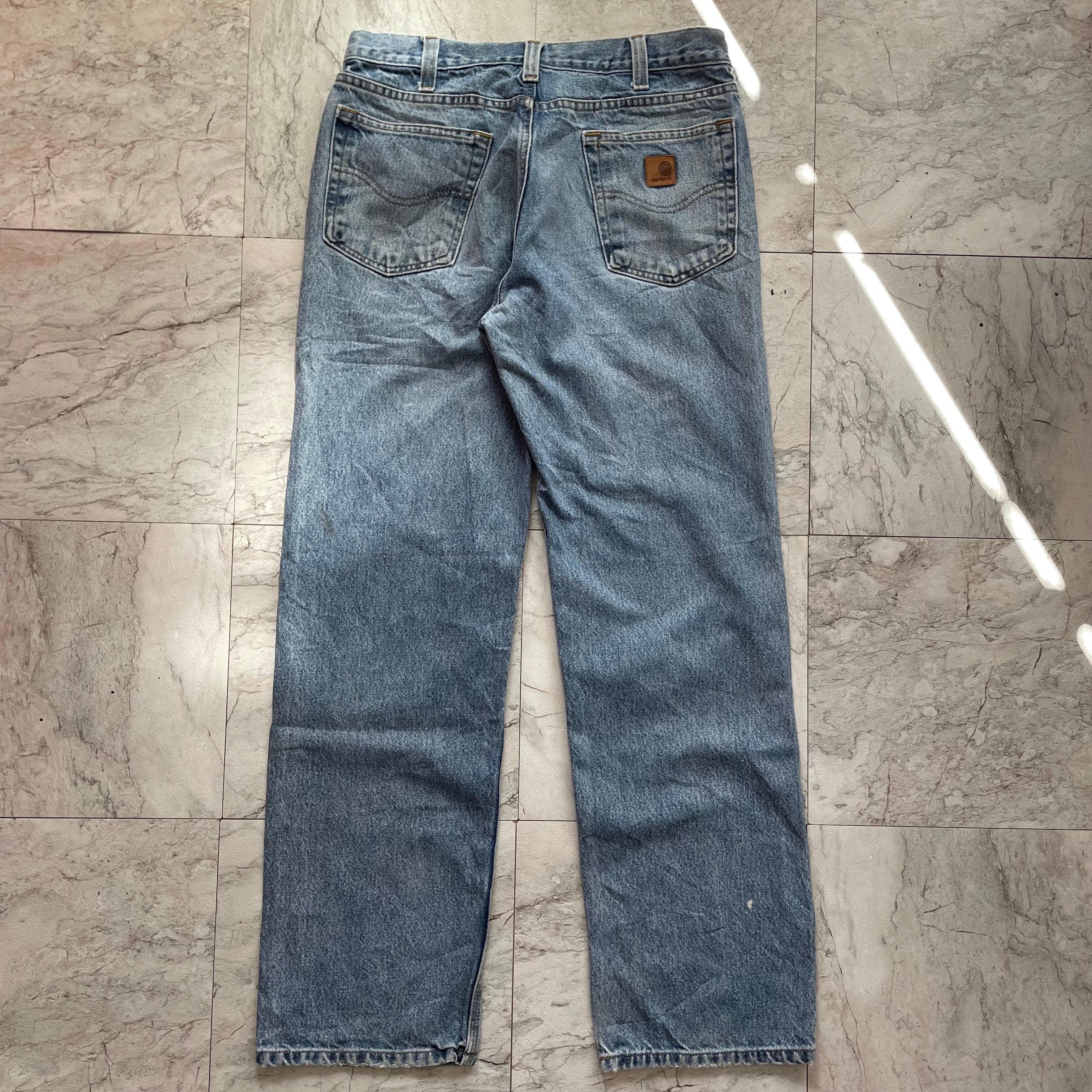 カーハートの短丈チェックシャツとデニムで合わせた海外スタイル。