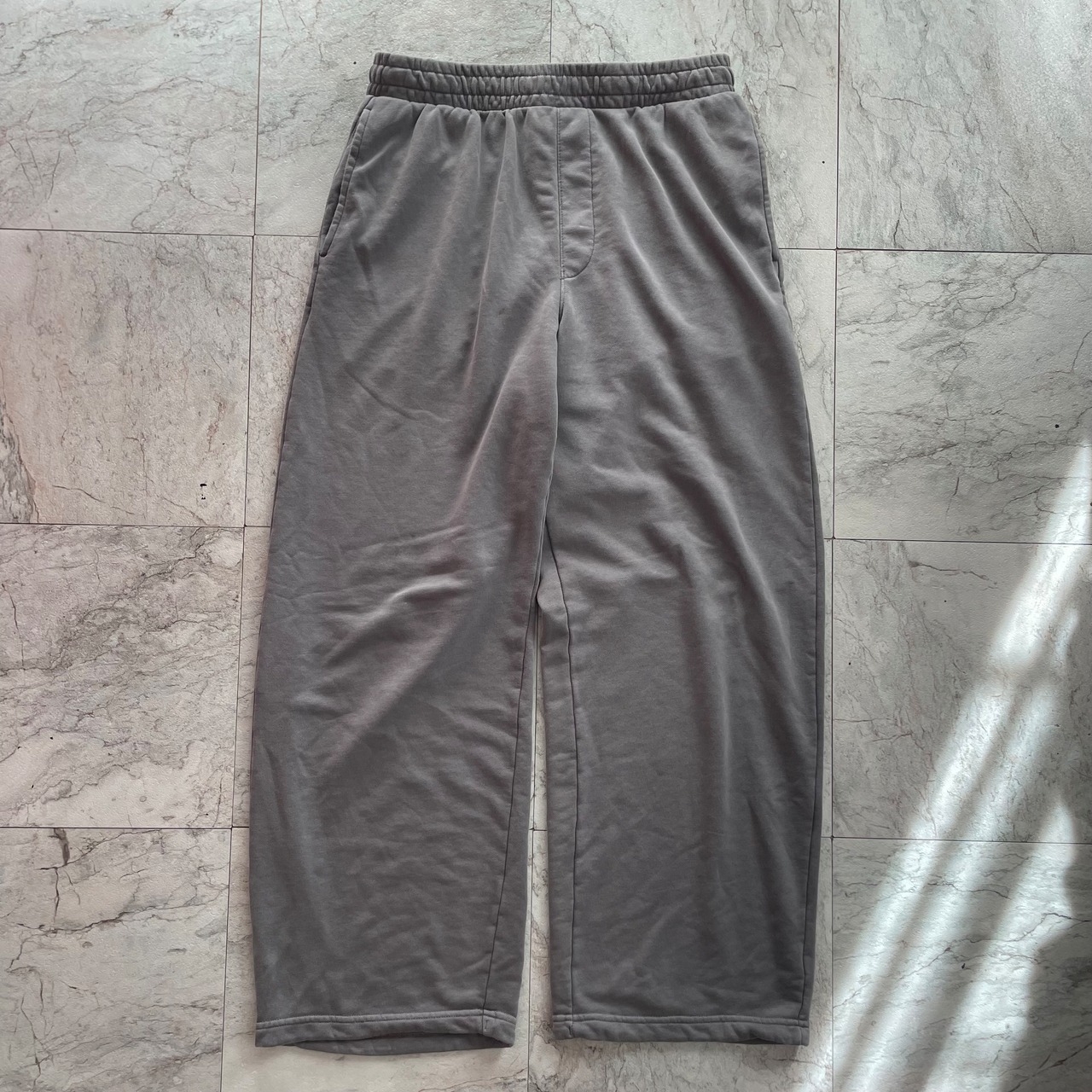 ビンテージのデニムジャケットとスウェットパンツを合わせた古着ミックススタイル。