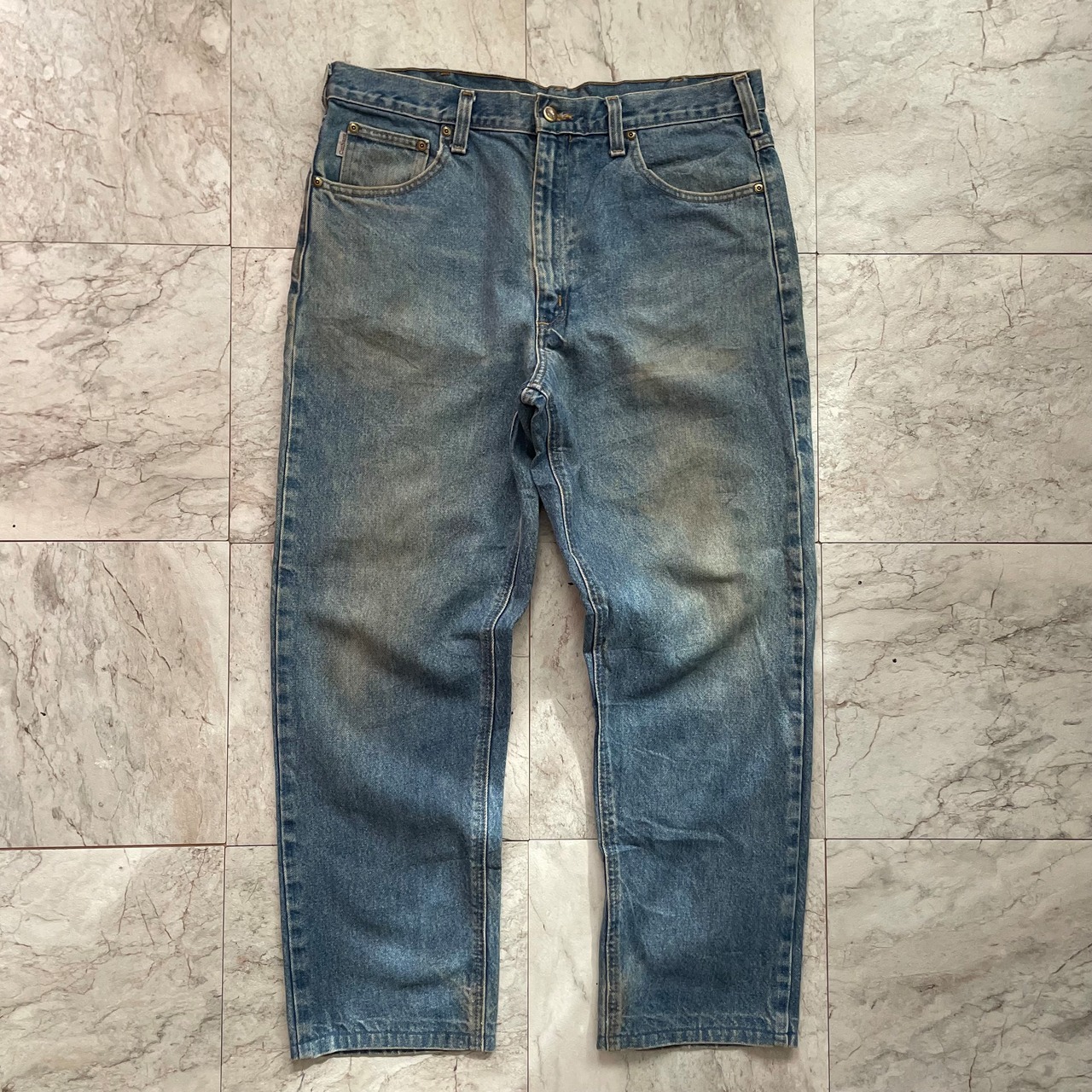 80sのアメリカ製のフルーツオブザルームのスウェットにCarharttのデニムを合わせた海外スタイル。