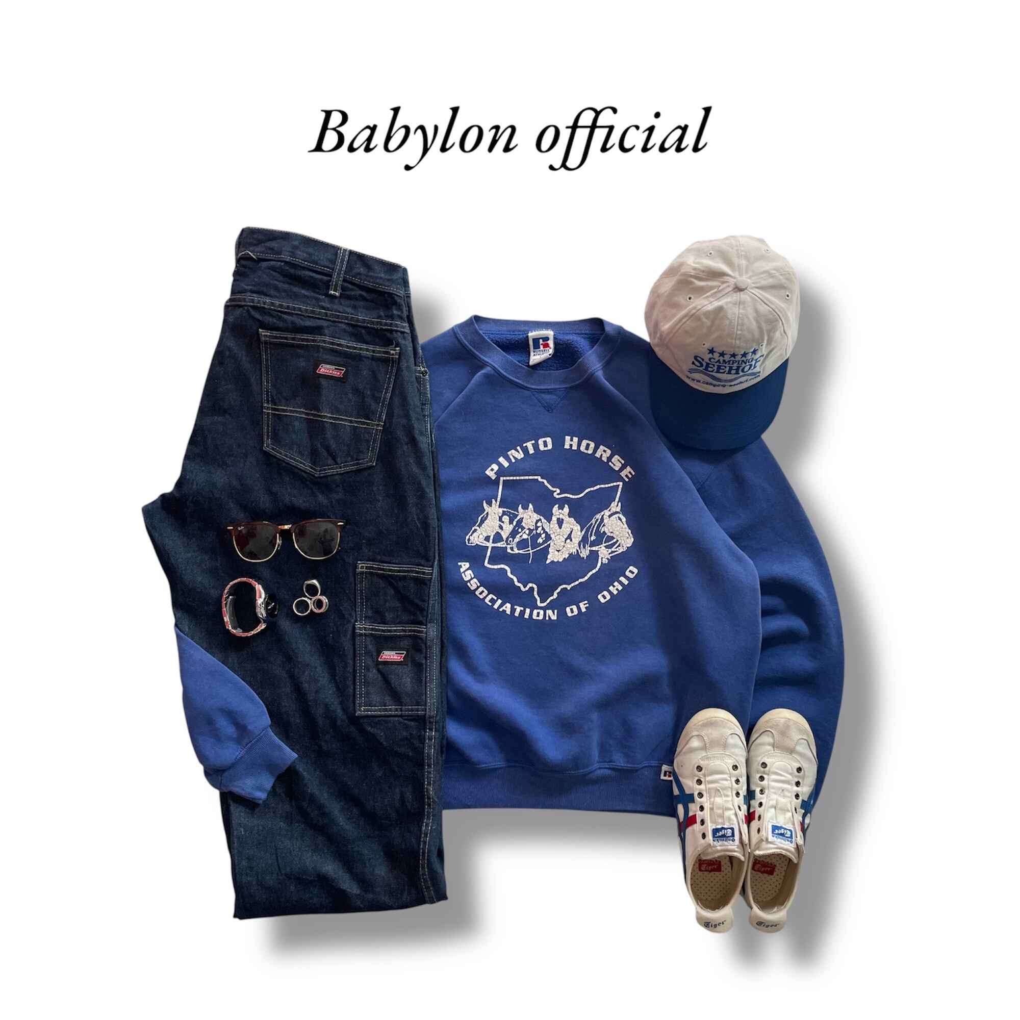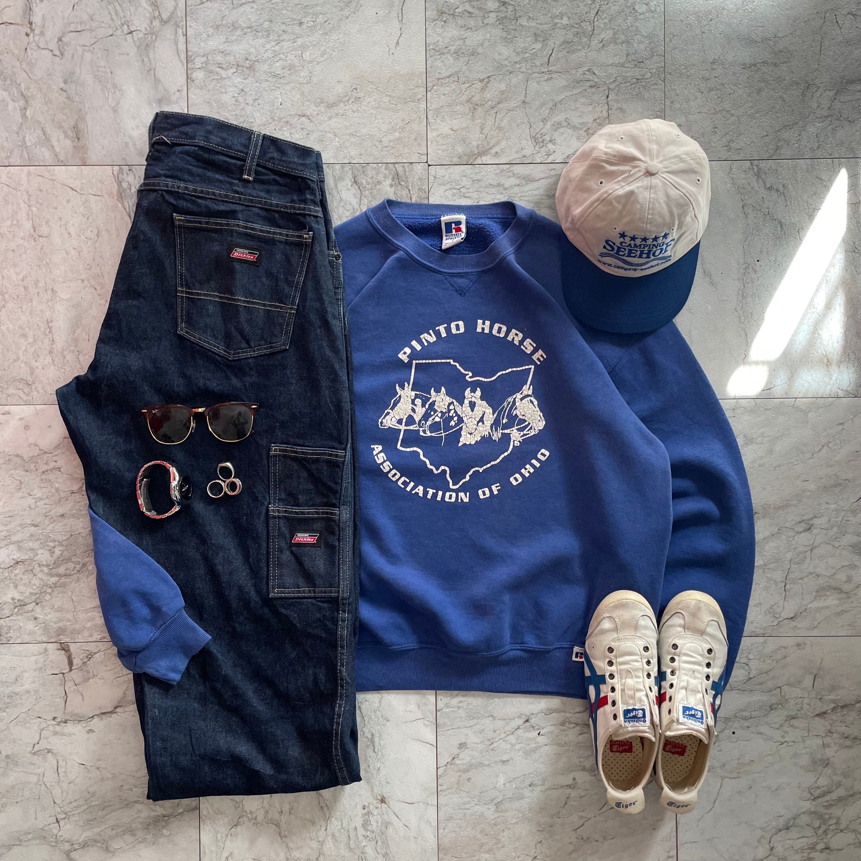 フェード具合、プリントの割れ方が程よく味の出たビンテージスウェット。アメカジスタイルにバッチリハマるアイテムで人気のRUSSELスウェットと間違いないアイテムです!パンツは濃紺のデニムで合わせアメカジにまとめました!